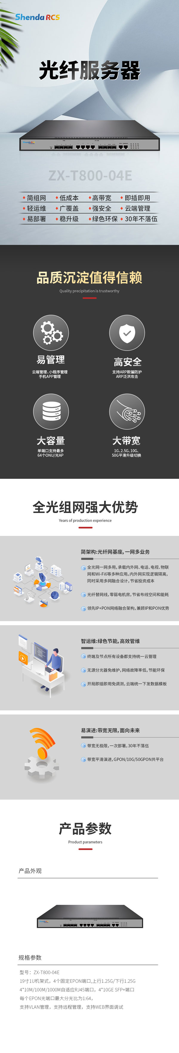 PON接口 | 端口數:4 物理接口:EPON SFP 接口類型:1000BASE-PX20+、PX20+++ 最大分光比:1:64 |